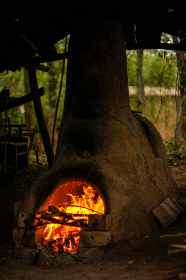 Simon Manoha cuit au bois et à l’électrique. Toujours en deux cuissons, un biscuit et une cuisson d’émail à 1280°c. Son four à bois est un phoenix, il cuit généralement avec des essences locales, bois mort qu’il ramasse dans les environs : châtaignier et résineux : pin, épicéa majoritairement et aulne, chêne, acacia, frêne, et hêtre parfois. Les cuissons durent 48h en général. Il aime autant travailler en oxydation qu’en réduction, en cuisson bois y compris.